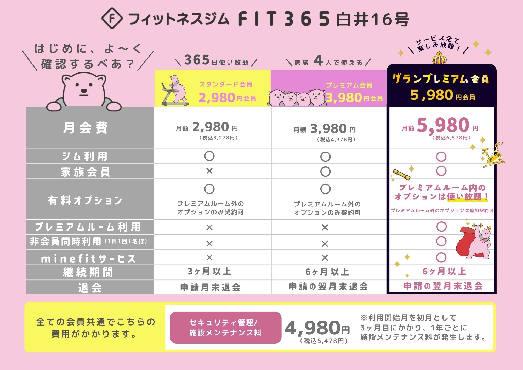 ※ご利用開始月初月とし3ヶ月目にセキュリティー管理費/施設メンテナンス料(年額)5,478円(税込)が発生致します。その後1年ごとに施設メンテナンス料が毎年発生します。