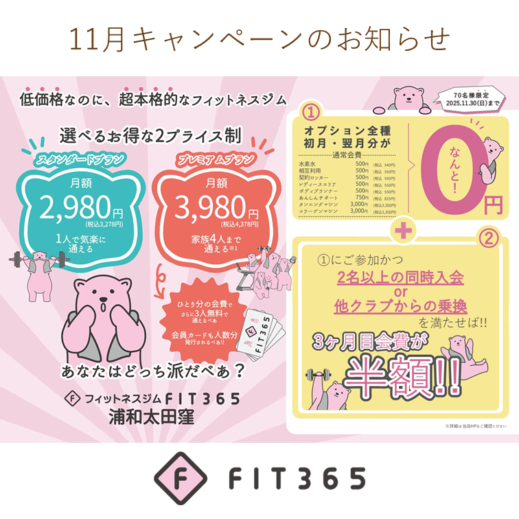 ※ご購入・ご入会ともにFIT365浦和太田窪でのご利用のみが対象となります。