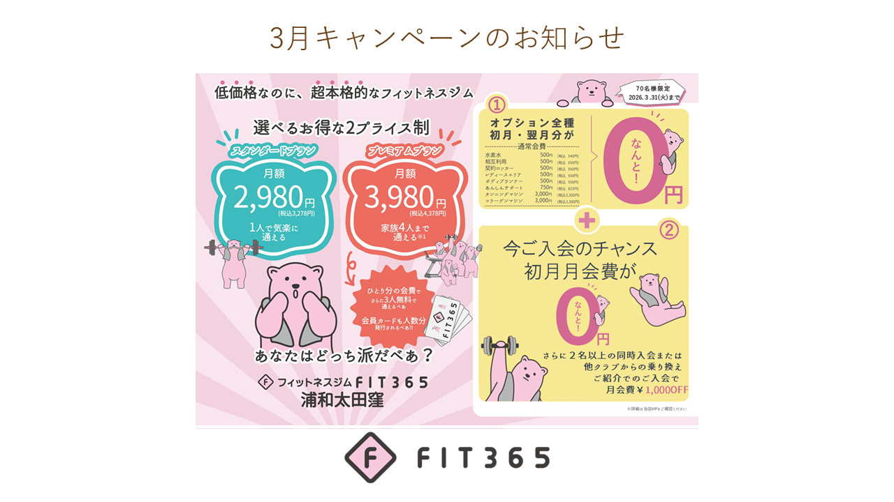 ※ご購入・ご入会ともにFIT365浦和太田窪でのご利用のみが対象となります。