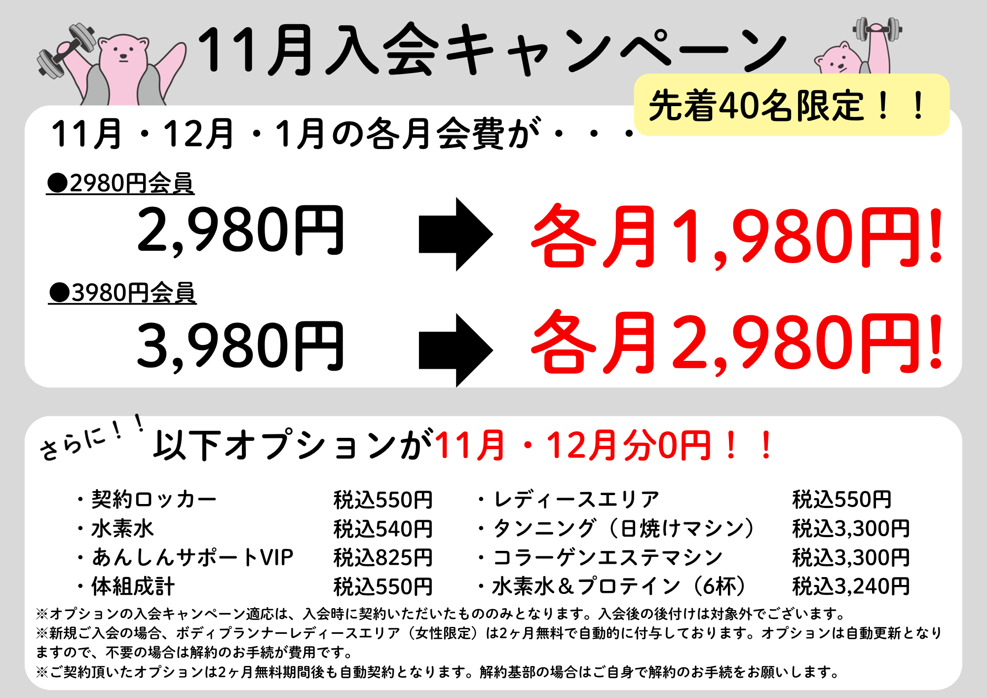 キャンペーンチラシはこちらから11月入会キャンペーン!!