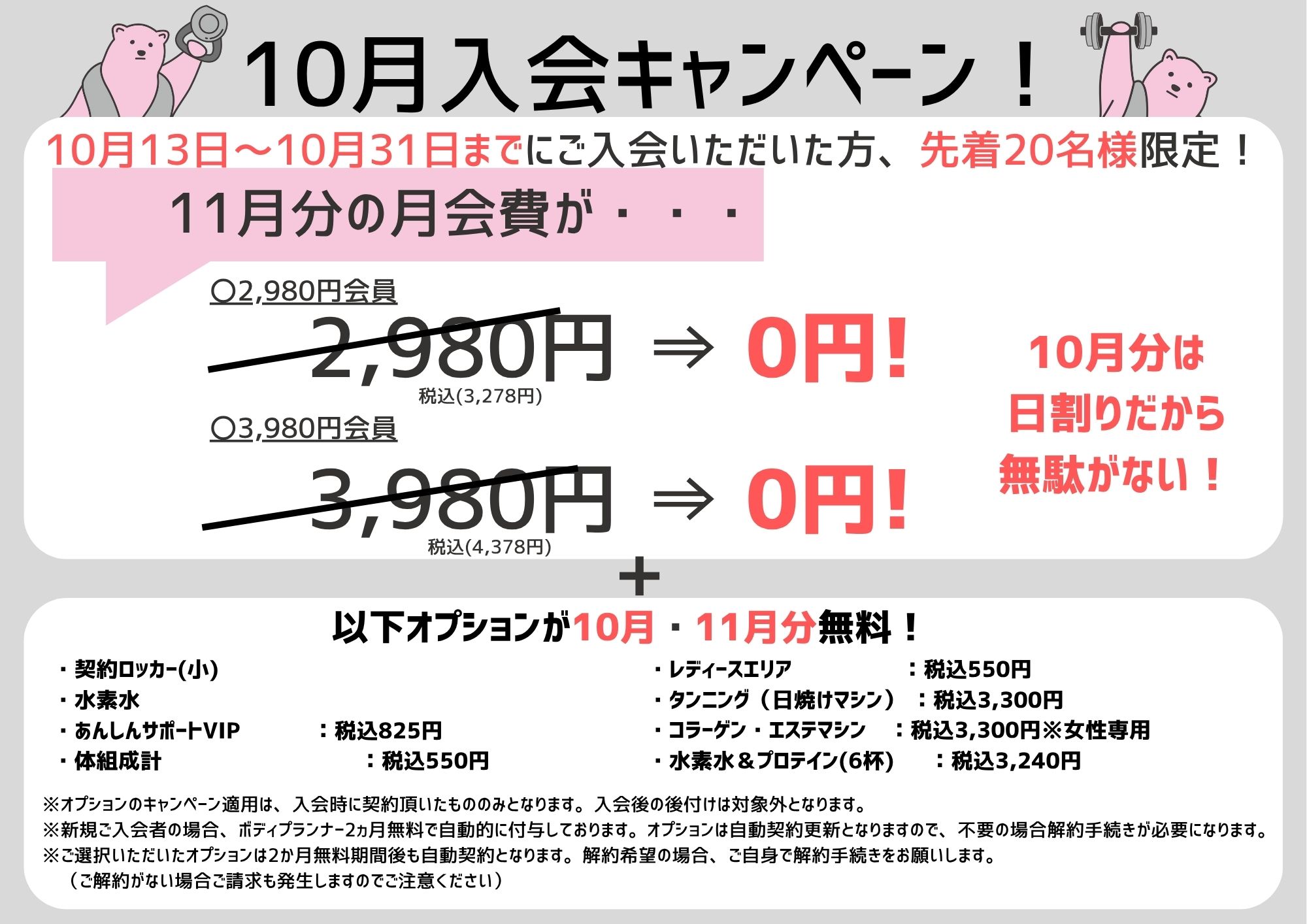 10月13日~10月31日の間にご入会手続きを完了頂けますと