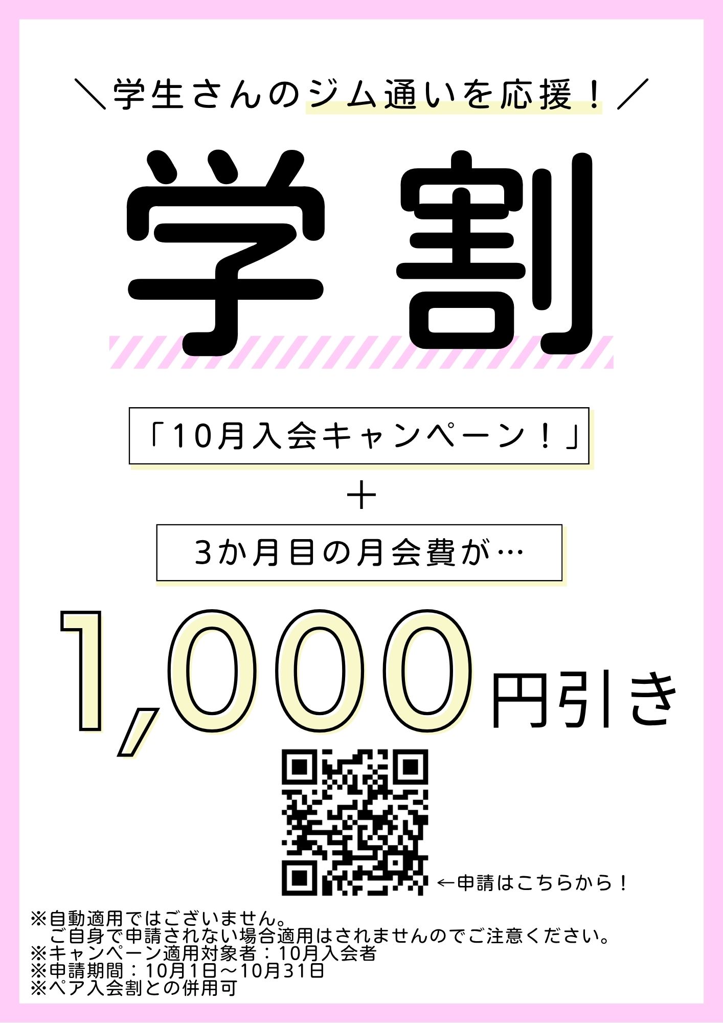 現在の学生の方は10月の「10月入会キャンペーン!」に加えて・・・