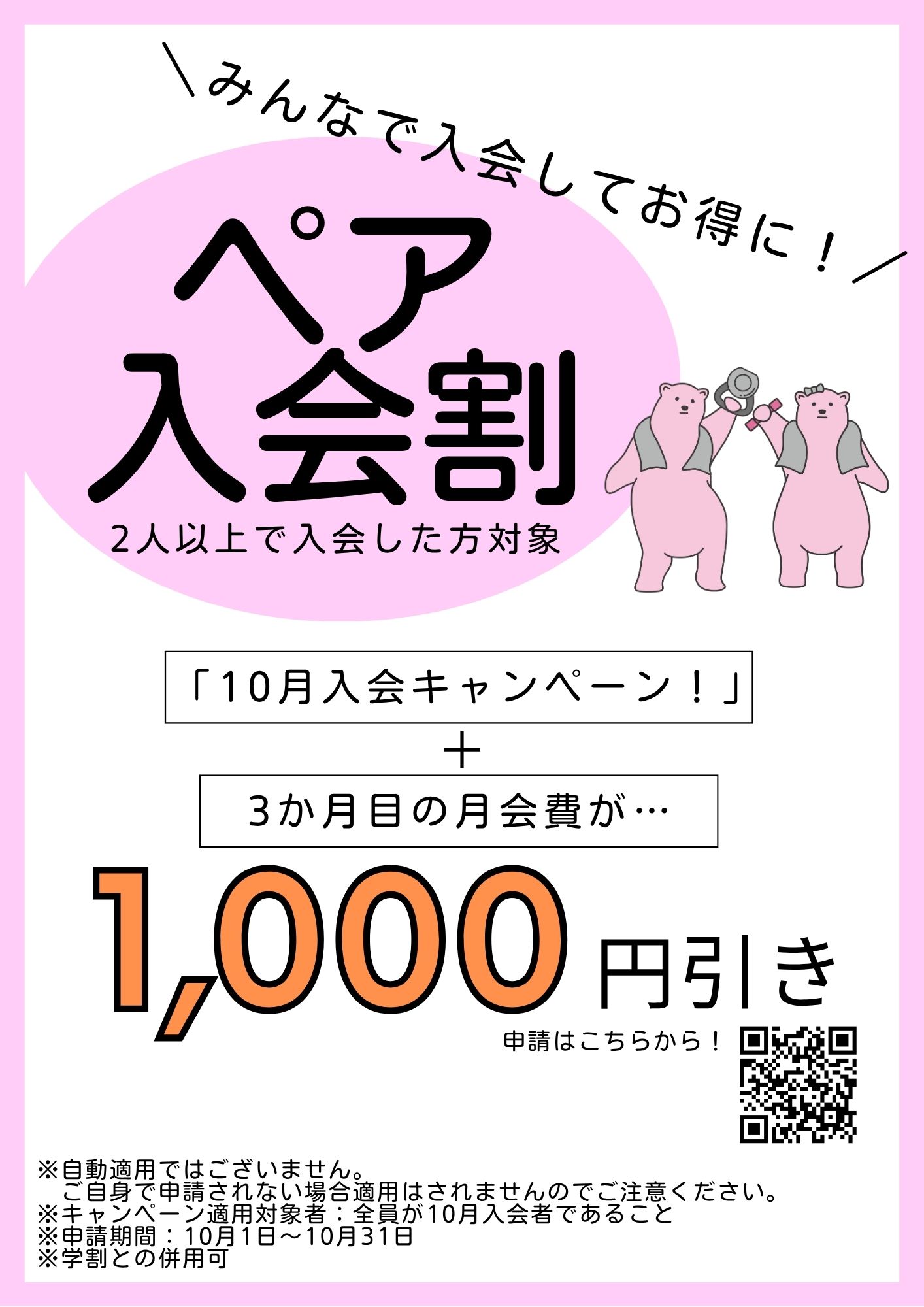 2名以上でご入会いただいた方は10月の「10月入会キャンペーン!」に加えて・・・